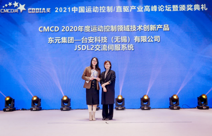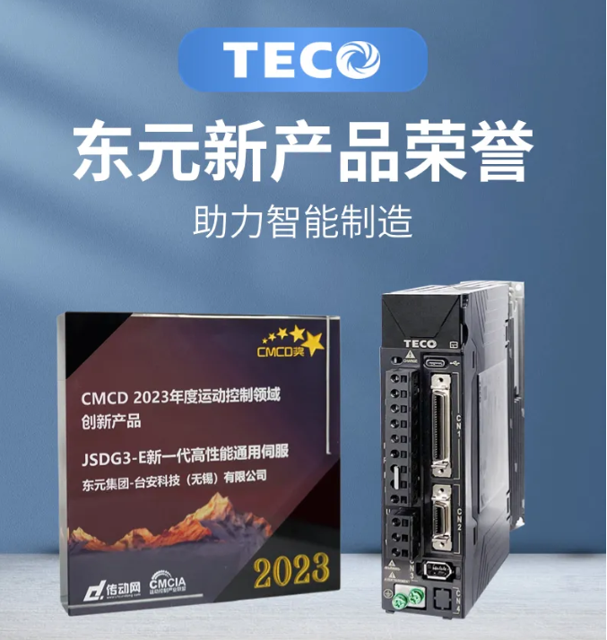 颁奖典礼表彰了伺服、运控/直驱领域优秀企业品牌、创新技术、产品、行业应用。其中东元新产品JSDG3-E系列伺服,荣获【CMCD2023年度运动控制领域创新产品奖】。